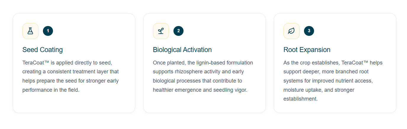 Formulated from renewable lignin, Tera™ Series provides a natural biostimulant platform that enhances seed performance while supporting sustainable agricultural practices.